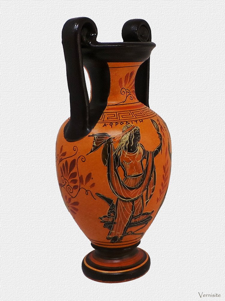 The beautifully hand-painted images of Aphrodite and Dionysus embody love, beauty, and the joyous spirit of wine. This vase not only enhances the aesthetic appeal of your space but also serves as a conversation starter, sparking interest in Greek mythology and culture. Â