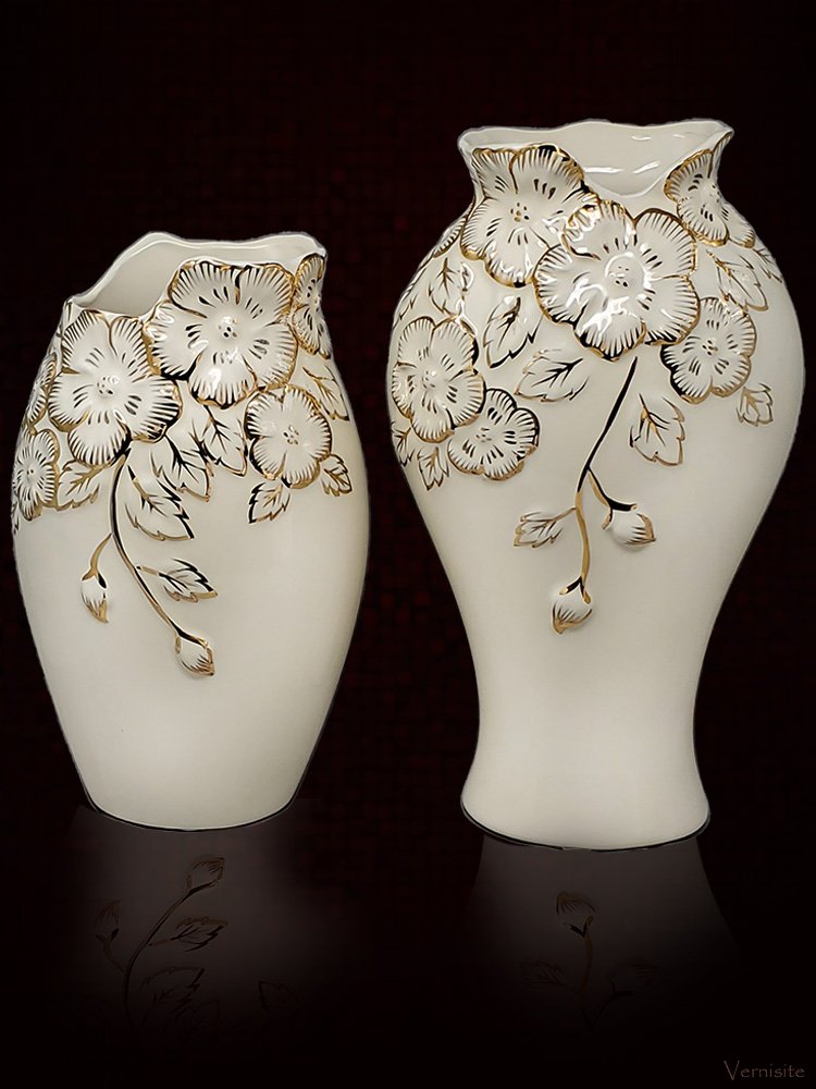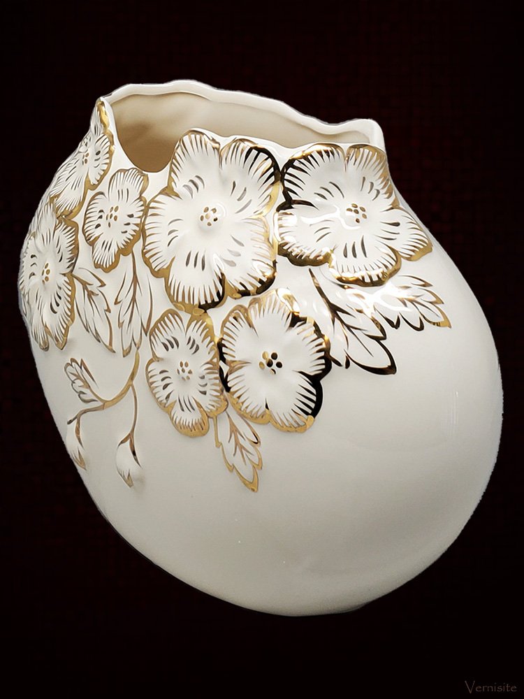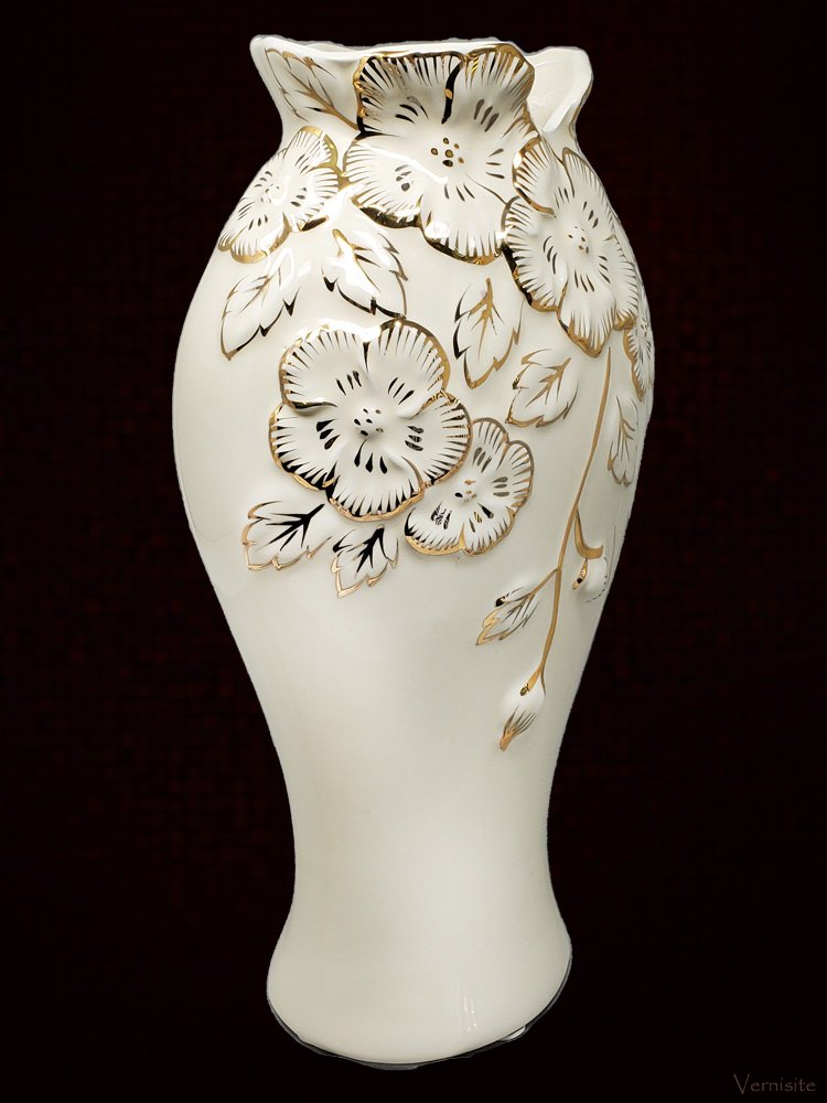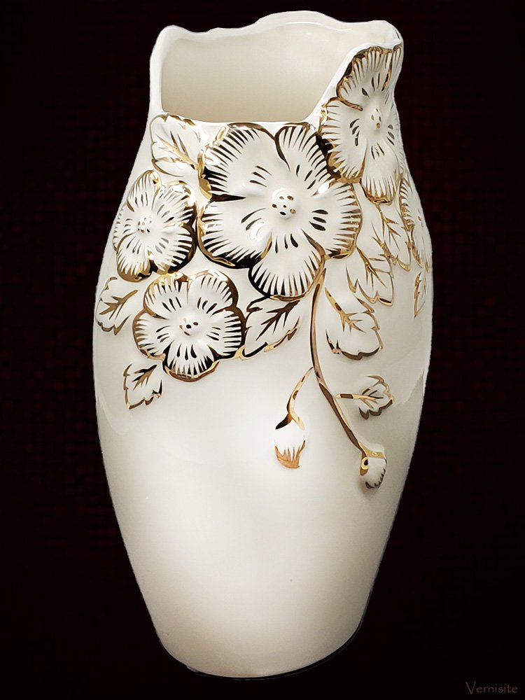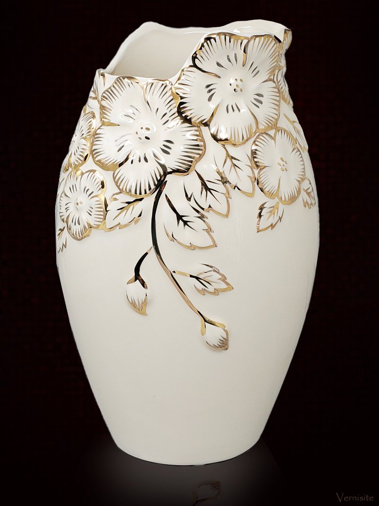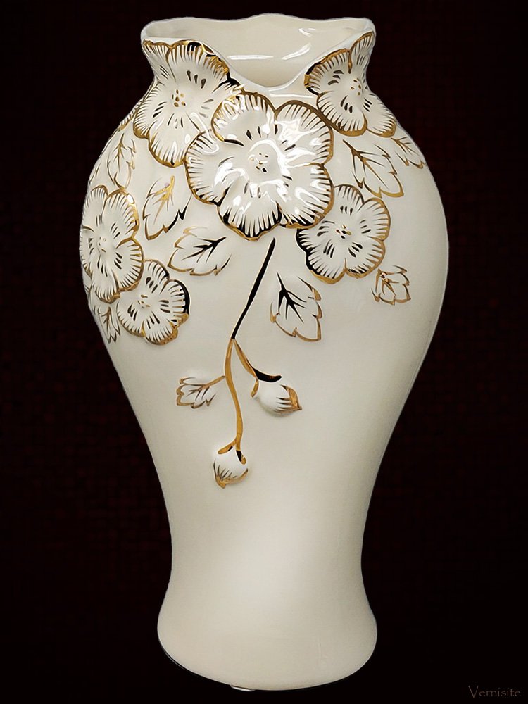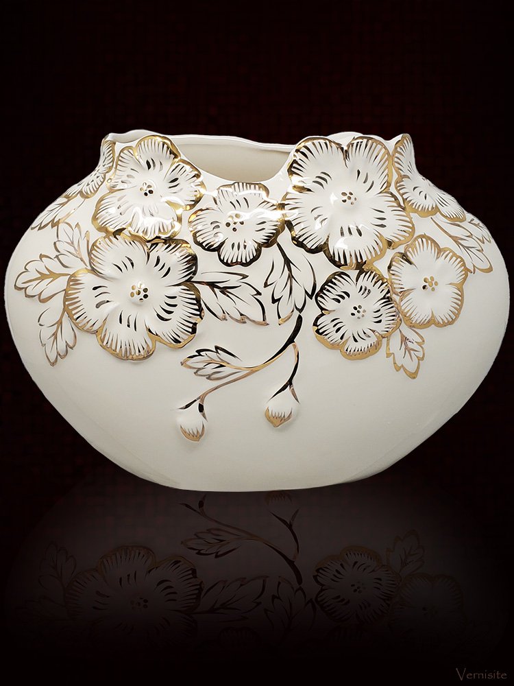 -Elegant Gold-White Ceramic Vase