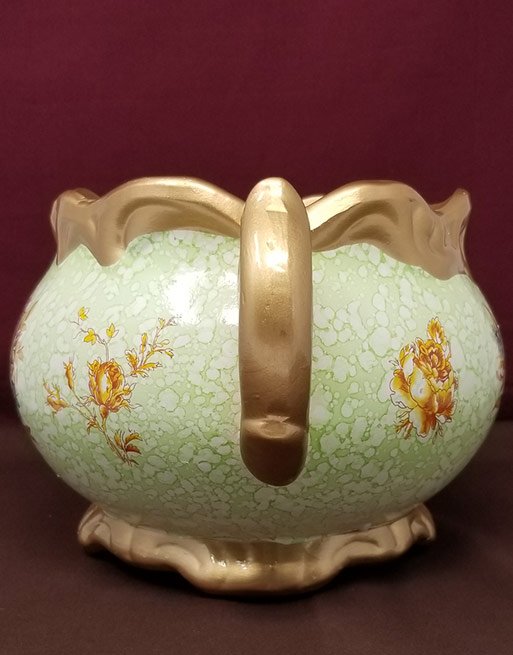 This beautiful two-handled jardinière serves as a delightful candy dish or flower vase and is available in three colors.