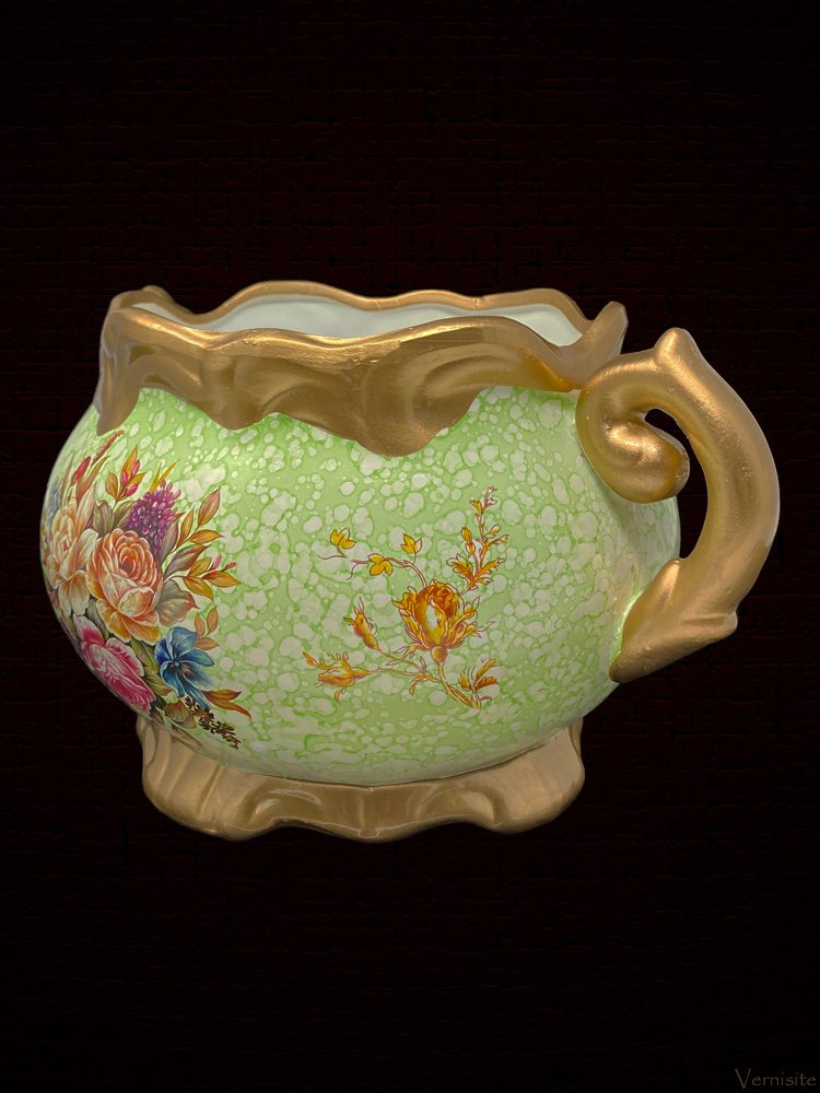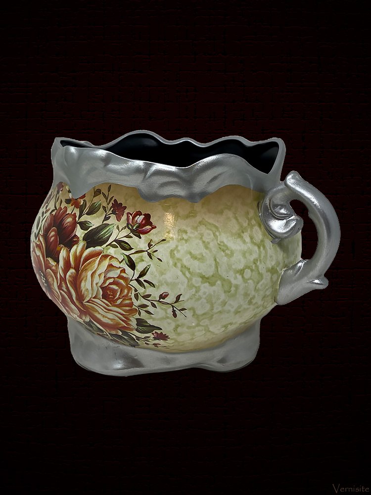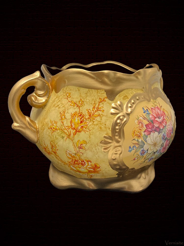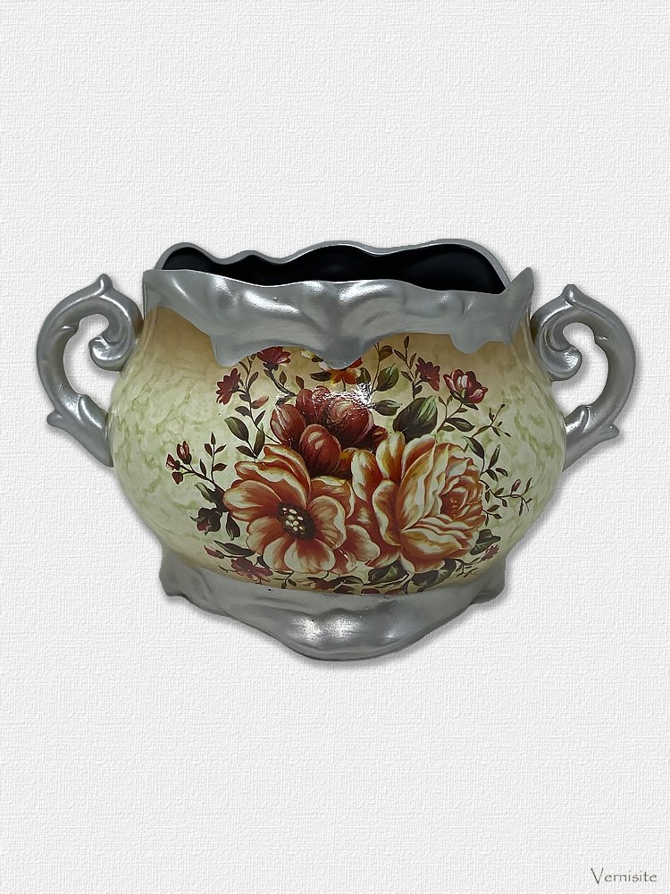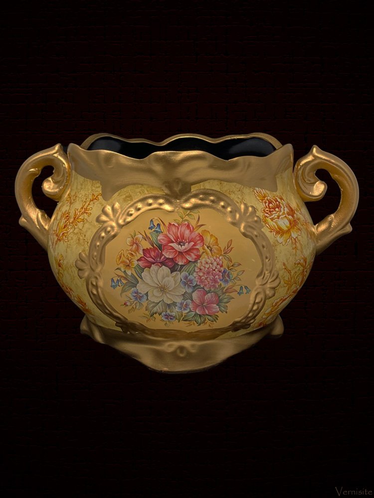 Transform your living space with our exquisite two-handled jardiniere/pot featuring floral blossoms and Gilt Decoration. This versatile 12″ Traditional Decorative Bowl Accent, crafted from high-quality ceramic and clay, is the perfect addition to any home.
