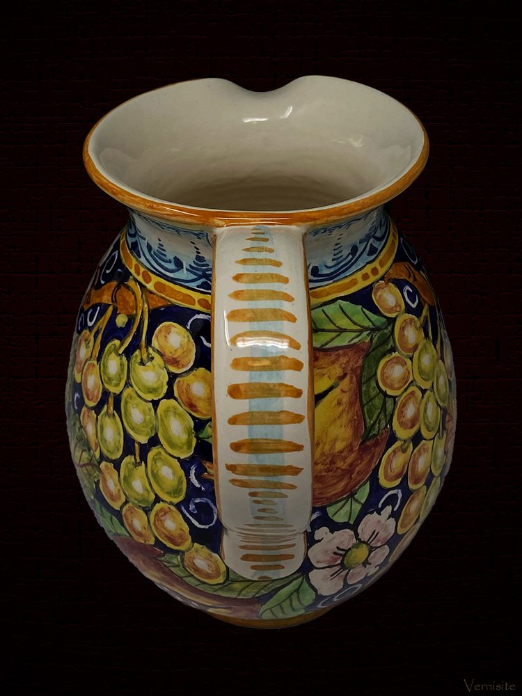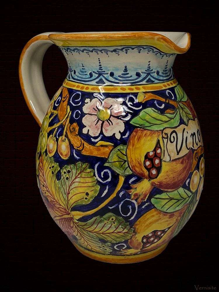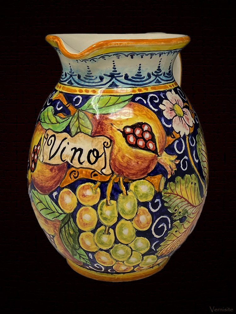 Experience the exquisite beauty of Italian craftsmanship with our hand-painted ceramic wine pitcher. It has been meticulously crafted by skilled artisans, ensuring a unique and authentic work of art.