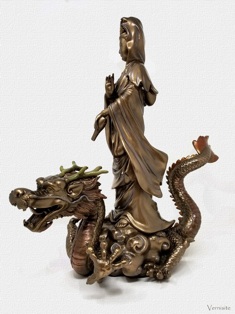 Embrace Compassion and Tranquility. Our Statue of Quan Yin invites the essence of compassion and tranquility into your home. This exquisite statue embodies Quan Yin’s loving and merciful nature and the powerful symbolism of the dragon.Â