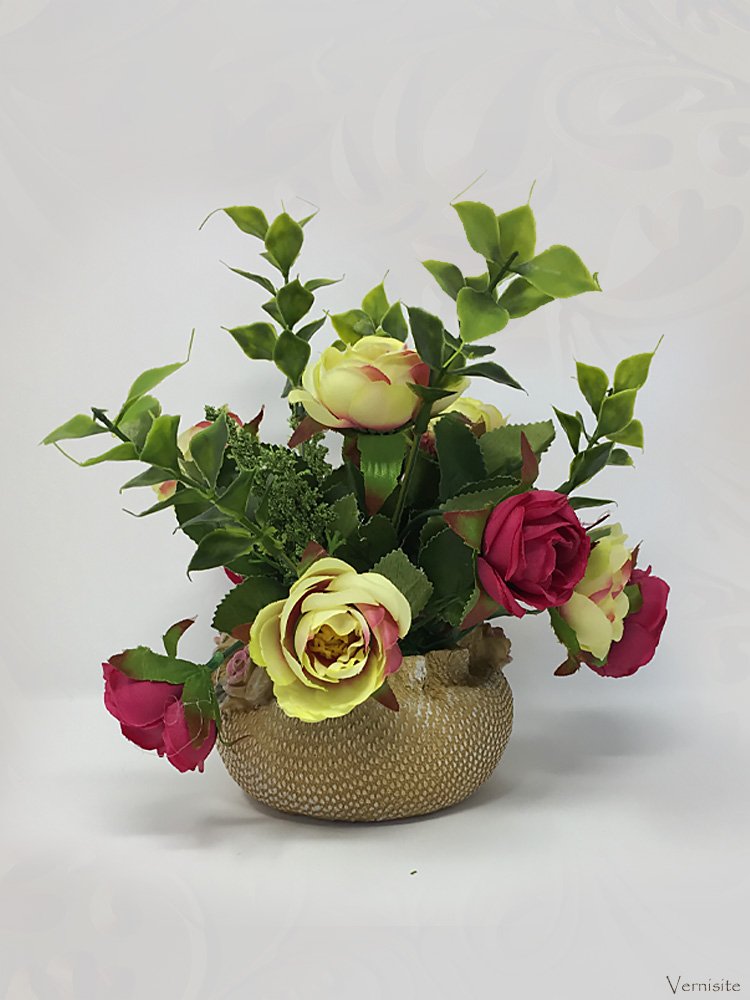Bring the vibrant charm of red and yellow roses into your home with this beautiful artificial flower arrangement. Enjoy the beauty of fresh blooms without the hassle of maintenance.
